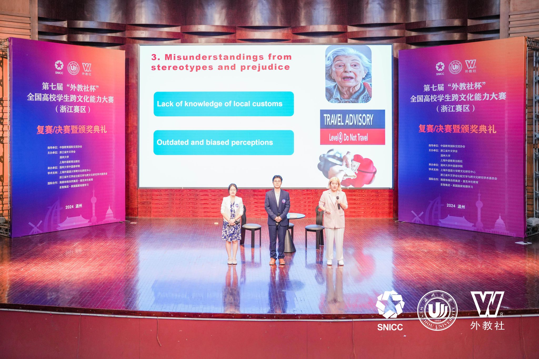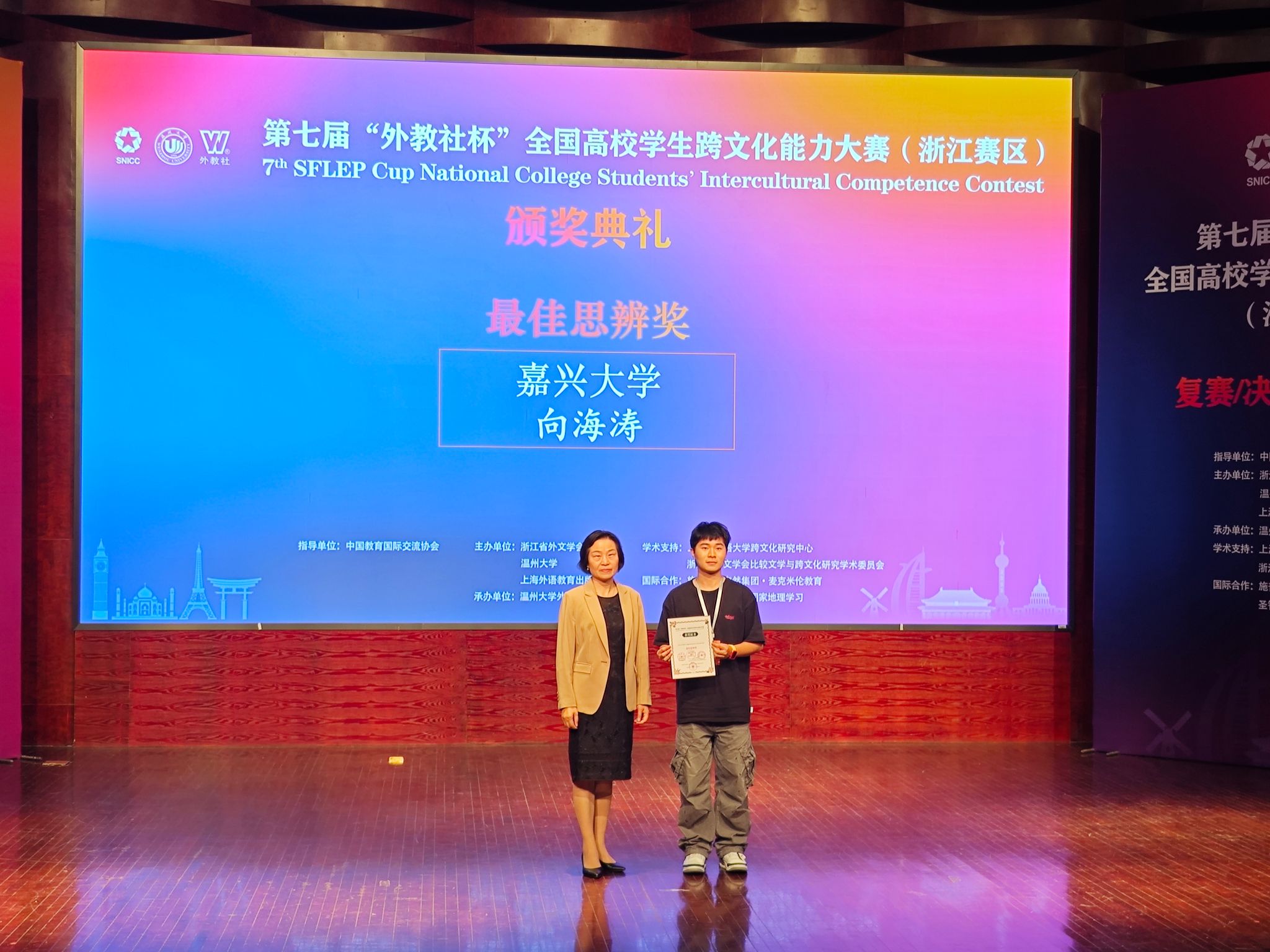 11月16日至17日,第七届“外教社杯”全国高校学生跨文化能力大赛浙江赛区(英文组赛道)在温州大学成功举办,吸引了来自浙江省30所高校的代表队参加。由伟德国际英国陶丹玉、罗国华和鲁俊丰老师指导的学生向海涛、项夕雅和周子璇三位选手代表伟德国际英国参赛获得省级一等奖,其中向海涛同学获得“最佳思辨奖”。这是我校学生在该项赛事获奖上取得的新突破。