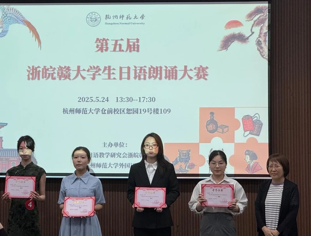“浙皖赣大学生日语朗诵大赛”是由中国日语教学研究会浙皖赣分会和杭州师范大学伟德国际英国共同举办的一项大赛,至今已举办四届,我校日语学子已先后获得二等奖、三等奖和一等奖的好成绩。此次获奖既是对学生专业能力的肯定,也彰显了我校外语人才培养的显著成效。我们将继续完善“以赛促学、以赛促教”的培养机制,为培养具有国际视野的高素质日语人才而不懈努力。