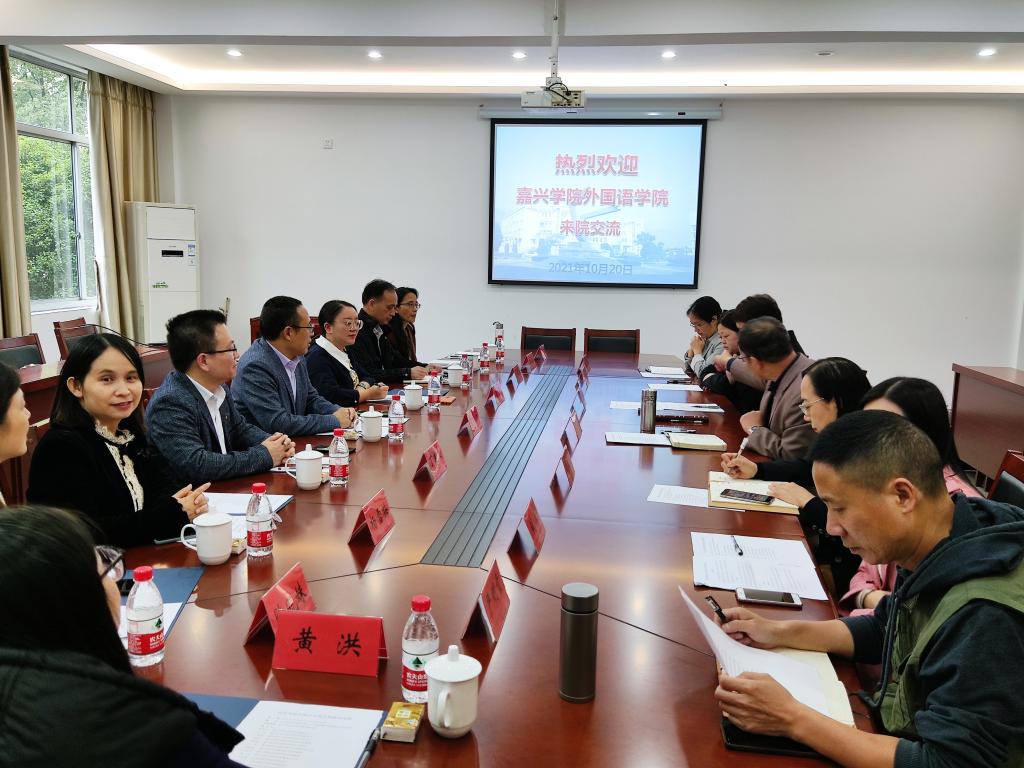 调研得到台州学院伟德国际英国热情又隆重的欢迎和接待,台州学院伟德国际英国长刘宏照、副院长刘富丽,副院长卢立伟及相关系部和部门主任均出席本次调研活动。首先,在台州学院伟德国际英国领导带领下,老师们参观了台州学院伟德国际英国教学实践平台、系部办公室、图书室、报告厅、健身房和外语学院文化墙,参观的老师们对跨境电商直播室留下了特别深刻的印象。参观结束后,刘宏照院长和刘富丽副院长先后介绍了台州学院伟德国际英国的概况、师资、人才培养、专业建设、课程建设和工作中取得的成就及面临的困难,喻锋平副院长就嘉兴学院伟德国际英国以上各个方面的情况和办学特色做了详细的介绍,会上双方进行充分的沟通和交流。此后,两个学院的英语专业、大外部、学工办和教务办相关部门的负责人和老师又进行一对一分组交流,详细、深入和高效地探讨各自关注的内容和问题。