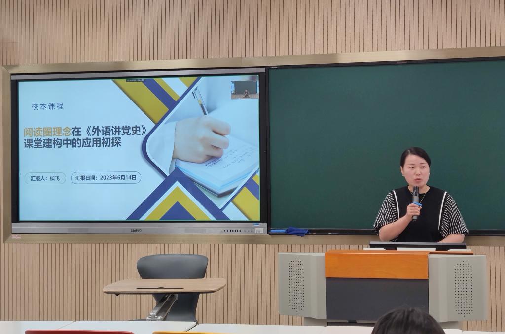 侯飞老师团队的特色课程是《外语讲党史》。侯老师从课程介绍、课程团队、阅读圈、课堂建构,和课程考核五个方面介绍了课程的建设历程。该课程是由外语学院院长唐艳芳领衔设计制作。建设该课程的目的在于引导学生用英文阅读和讲述党的百年历史,提高学生英文听说读写的水平,培养学生正确的价值观和深厚的家国情怀。侯老师重点介绍了阅读圈在本课程建设中的应用情况。阅读圈是以学生为主体,以阅读任务为基础,以小组成员分工合作的一种学习方式。有效应用阅读圈,可以极大地激发学生学习的主动性和参与性,也体现了教师在该课程教学中的创新性。