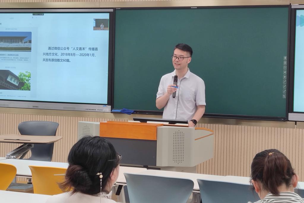 鲁俊丰老师团队的特色课程是《五彩嘉兴》。鲁老师用富有魅力的声音耐心详细地介绍了课程建设的缘起、课程概况和目标、课程的设计实施及评价,以及未来课程建设展望。鲁老师分享了课程建设之初所做的充分而扎实的准备工作,清晰详实地介绍了该课程的目标、设计、实施与评价方面的特色。从鲁老师饱含激情的分享声中,我们感受到了课程团队教师为课程建设所达成的精诚合作和倾情奉献的精神。