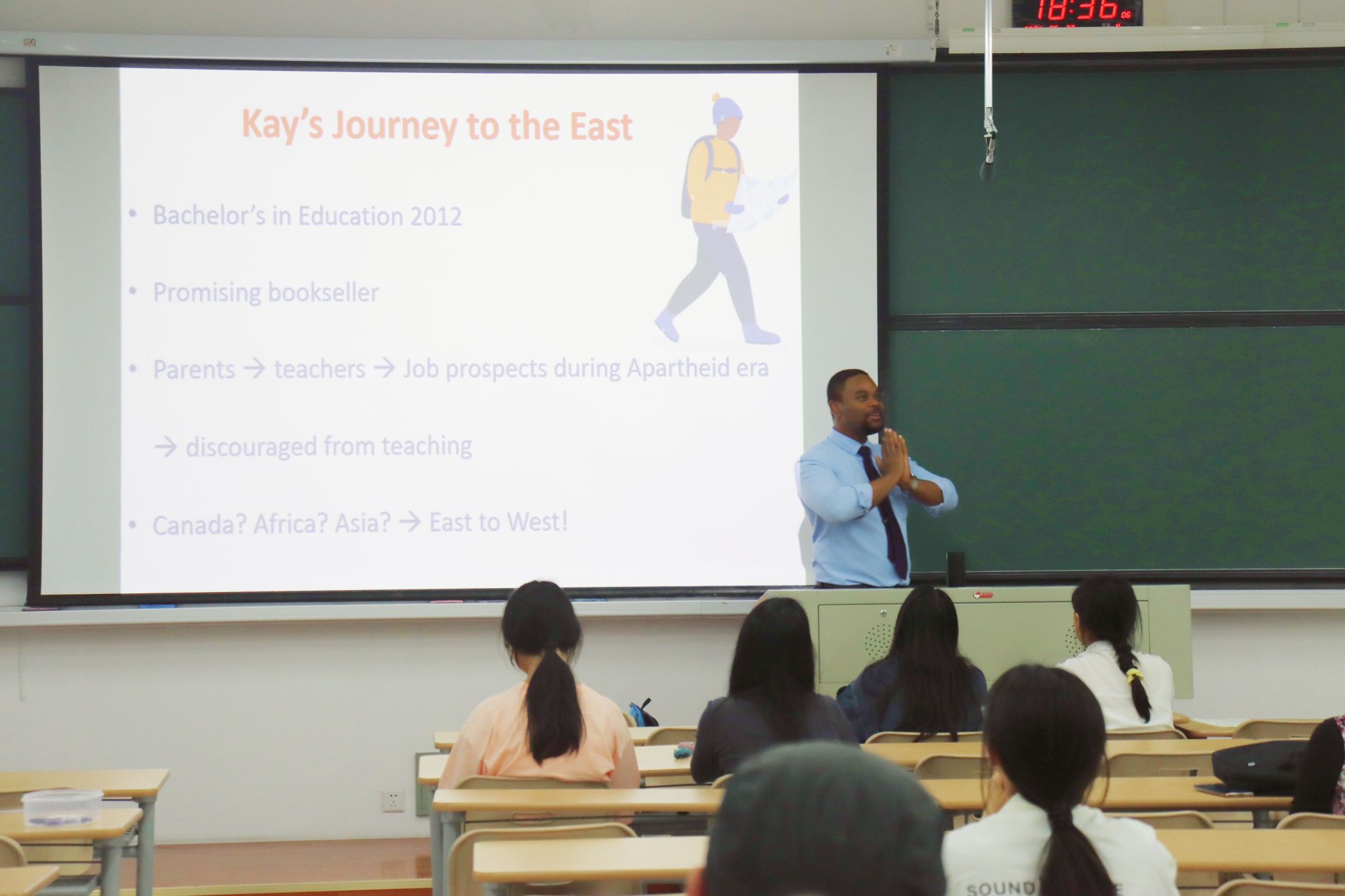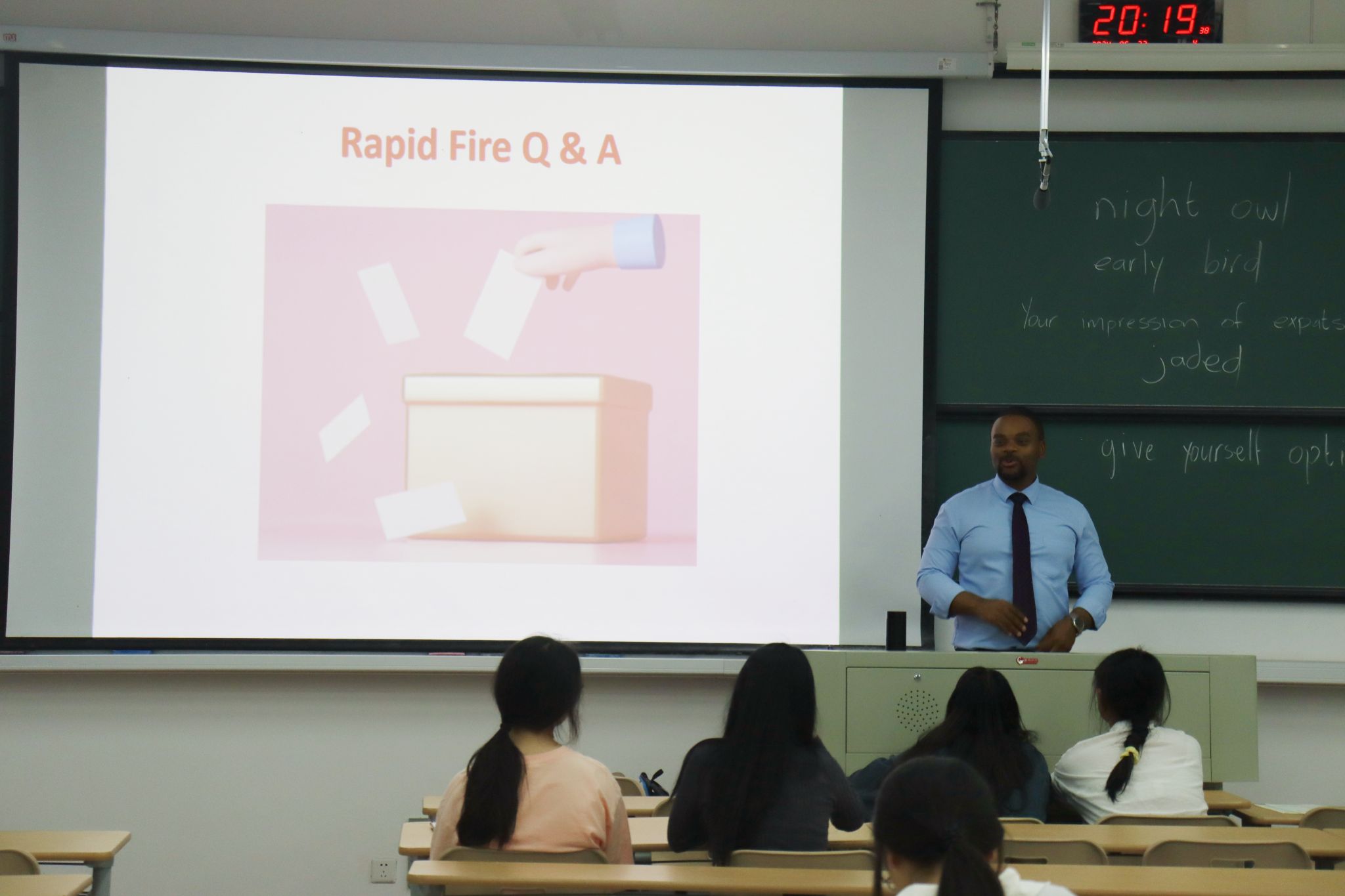 Kay以“Life as an Expat”为主题,与各位同学进行了热烈、愉快的交流。沙龙伊始,Kay讲述了本次沙龙主题中“Expat”的含义,以便同学们后续做进一步的了解。随后,Kay向同学们介绍了自己远离家乡,一路向东途径的各个地方,并分享了一路上相关的个人经历,同时与同学们分享了旅居国外的好处。讲座过程中,Kay穿插讲述了“拓宽视野”这一短语的多种近似英语表达,促进了同学们的多元化表达思维。其次,通过询问同学们对跨国界生活的看法,Kay耐心引导同学表达相关观点,并在互动交流的过程中,给予积极反馈。随后,Kay分享了其他几位外教老师对跨国界生活的看法以及面临的相关挑战,并给予了个人建议。最后,外教老师询问了同学们是否打算在不久的将来旅居国外,大家争先回答讨论,给大家提供了毕业后生活的一个全新视角。