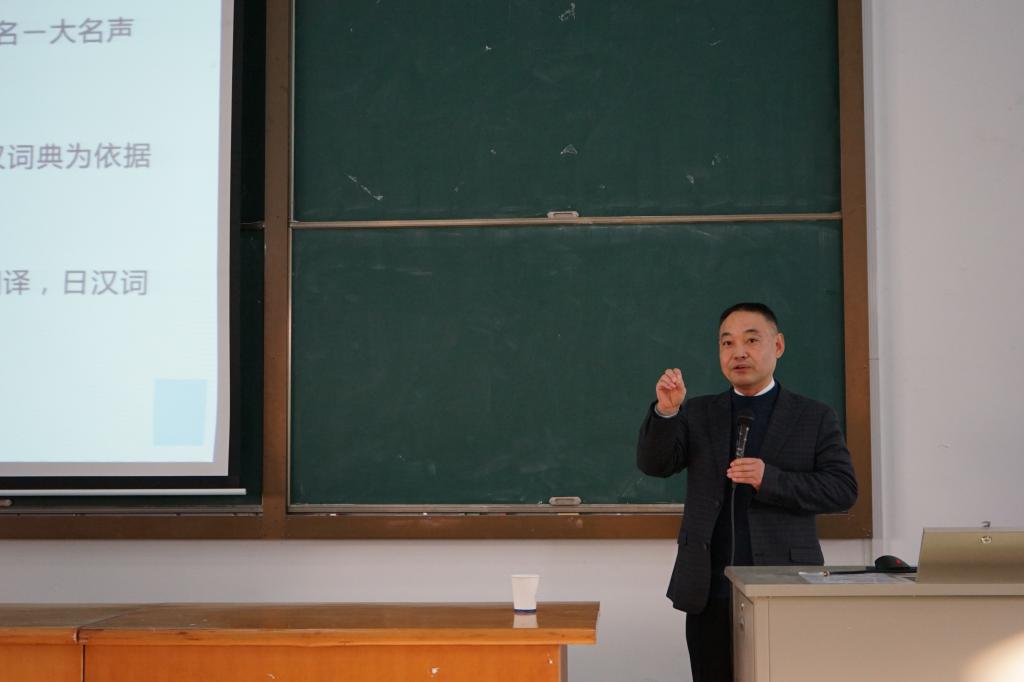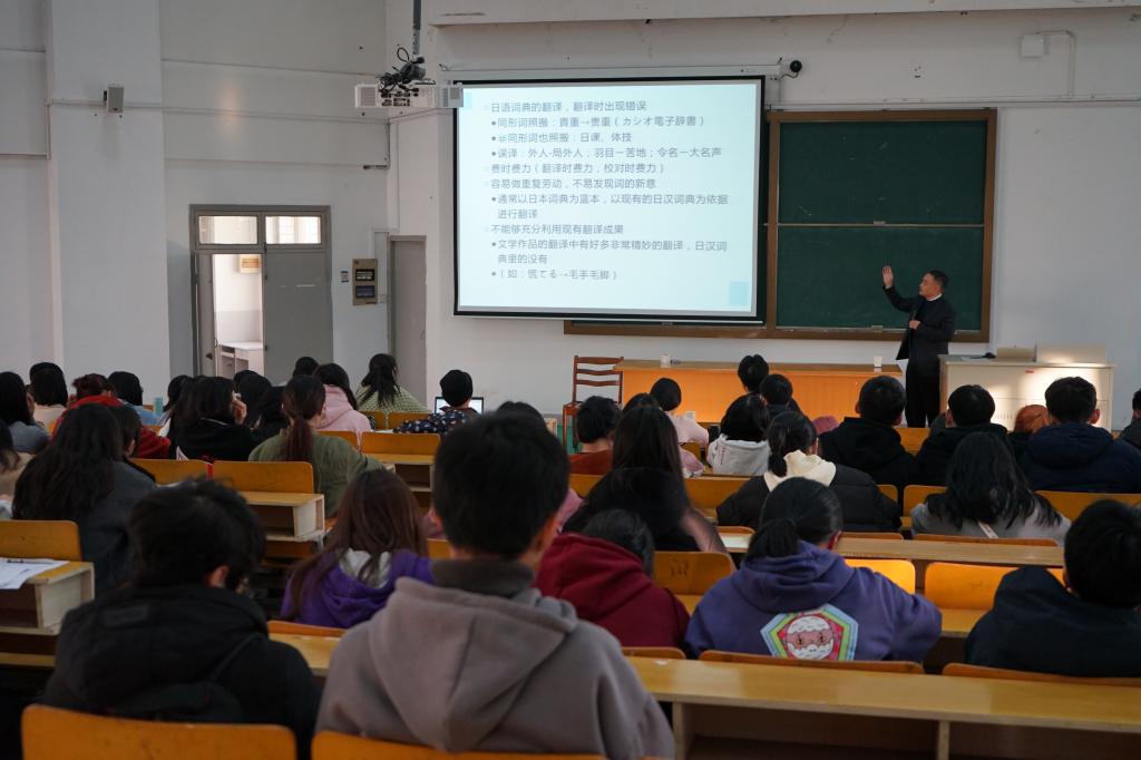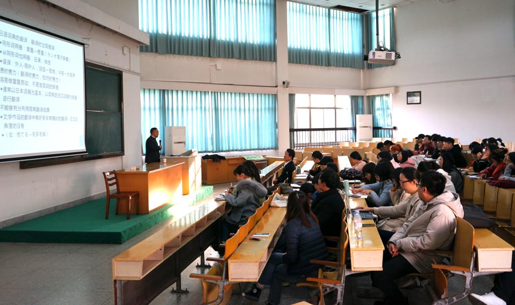 2019年12月12日下午,上海外国语大学施建军教授莅临我院,在外语楼310做了一场题为“关于中日近义词的互译性问题”的学术讲座。讲座由伟德国际英国副院长郭永恩教授主持,日语系全体教师和数名英语系教师以及百余名日语专业学生积极参加了讲座。