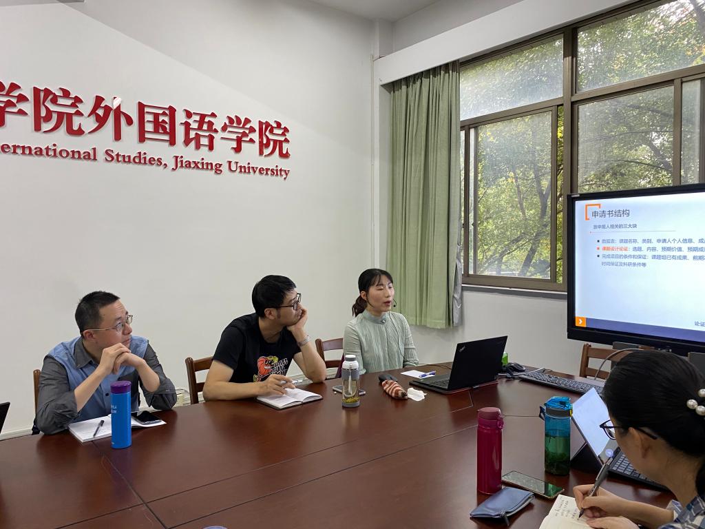 9月24日下午,伟德国际英国在外语楼204会议室召开省哲社规划课题申报经验分享会,会议由科研副院长郭永恩教授主持,英语系邱佳博士担任主讲,具有博士学历和副教授以上职称的近30余名科研骨干教师参加了会议。
