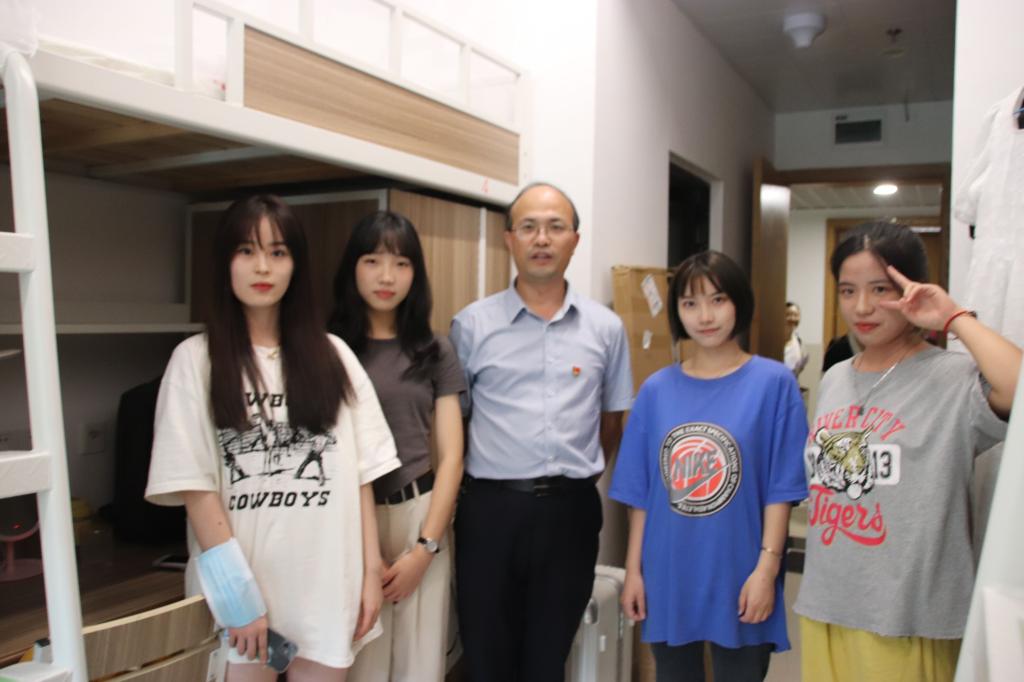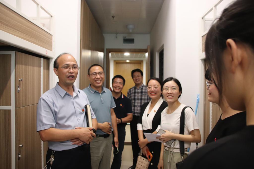 9月9日下午,校党委委员、副校长杨培强在伟德国际英国党政领导班子和学工办老师的陪同下走访了新生宿舍,为2021级新生送去温暖的问候与祝福。