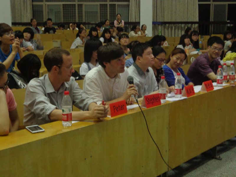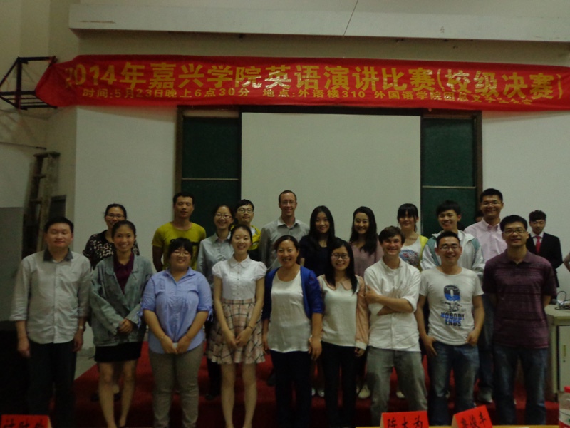 2014年嘉兴学院大学生英语演讲比赛于5月23日晚在伟德国际英国外语楼310教室举行。经过初赛和复赛的激烈比拼,来自嘉兴学院各二级分院的同学共有25名选手(实到23人,2人弃权)脱颖而出进入决赛。本次比赛由伟德国际英国陶丹玉、钱征宇、张静、鲁俊丰、陈大为老师和外教Peter及Stephen担任评委。