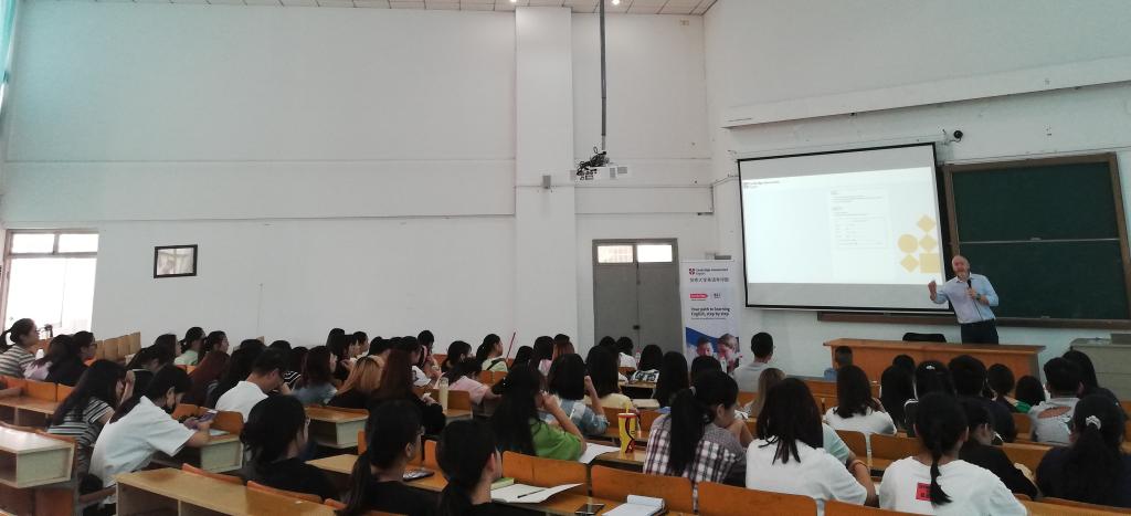 2019年9月19日下午,剑桥大学BEC全球主管Ian Cawley先生,在剑桥大学英语考评部华东负责人李明先生和东亚区测评服务经理毕诗惠女士的陪同下,莅临嘉兴学院作客伟德国际英国社会培训与服务中心,并应邀在外语楼310为嘉兴学院学生做了一场精彩的讲座。讲座由BEC嘉兴学院考点负责人黄洪老师主持,来自校内外的百余名考生和英语爱好者到场参加。