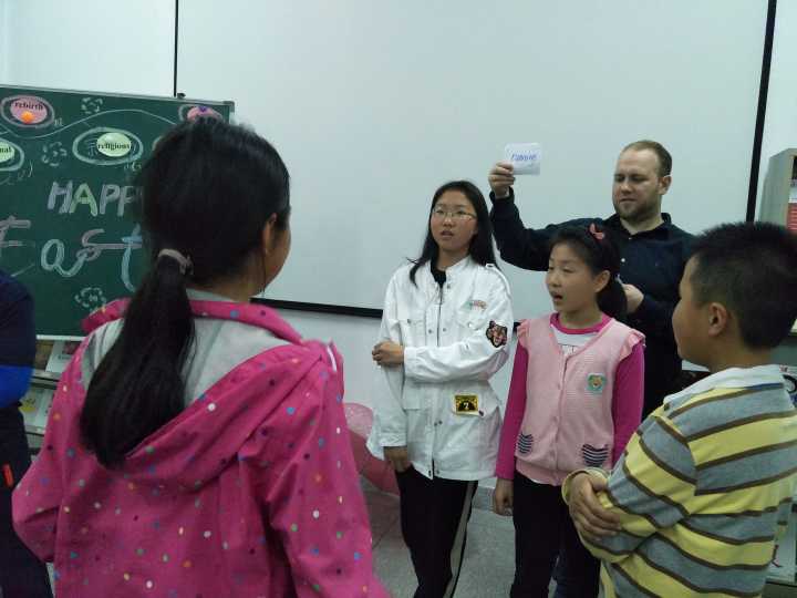 为了让小学员们了解和体验多种文化和习俗,伟德国际英国社会培训与服务中心邀请了美籍教师Patrick,与中教一起在4月21日给少儿英语培训班学员带来了丰富有趣的英语主题活动。这一天,新概念II级班的孩子们在活动与游戏中参加了一场另类的考核;这种寓考于乐的方式,深受欢迎孩子们欢迎。