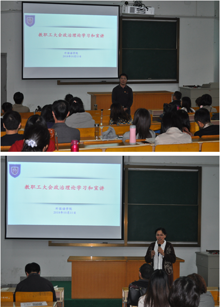 10月11日下午,伟德国际英国在外语楼310召开了教职工大会,会议由唐艳芳院长主持,伟德国际英国全体教职工参加会议。学院党委书记陶丹玉组织全院教职工进行政治理论学习和全国教育工作会议精神宣讲。