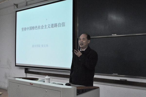 张文华说,在世界经济全球化趋势越来越明显的今天,外院教师不仅要了解和吸收西方文化知识,更应该自觉加强中国特色社会主义理论学习,增强民族自豪感,提升中国传统文化修养,增强政治自信,道路自信,制度自信和文化自信。张文华的报告充满激情,富有很强的感染力,给全体教师上了一堂颇有深意的政治理论课。