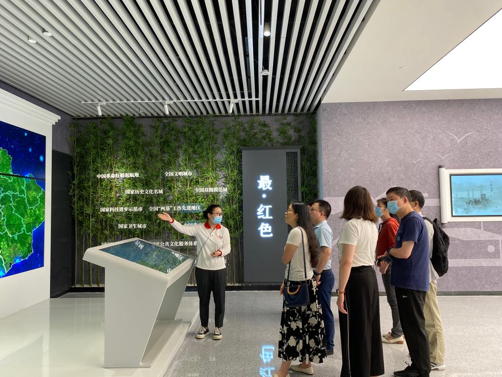 在讲解员引导下,大家先后参观了“最·嘉兴”市民互动区、红船书吧、“红船映初心·奋楫新时代”主题展陈区、“大国工匠”沈鸿生平展、百年党史体验区、南湖•初心讲堂直播间、96345志愿服务中心、社会组织培育发展中心、心理科普体验厅等区域。新颖生动的系列展览,打破传统学习模式,通过体感触控、智能投影、3D体验等技术,大家接受了一场沉浸式的、全景式的、互动式的党性教育,学习了习近平新时代中国特色社会主义思想,加深了对伟大建党精神和红船精神内涵的感悟,深刻体会了中国共产党的百年奋斗史以及禾城的蝶变跨越史。