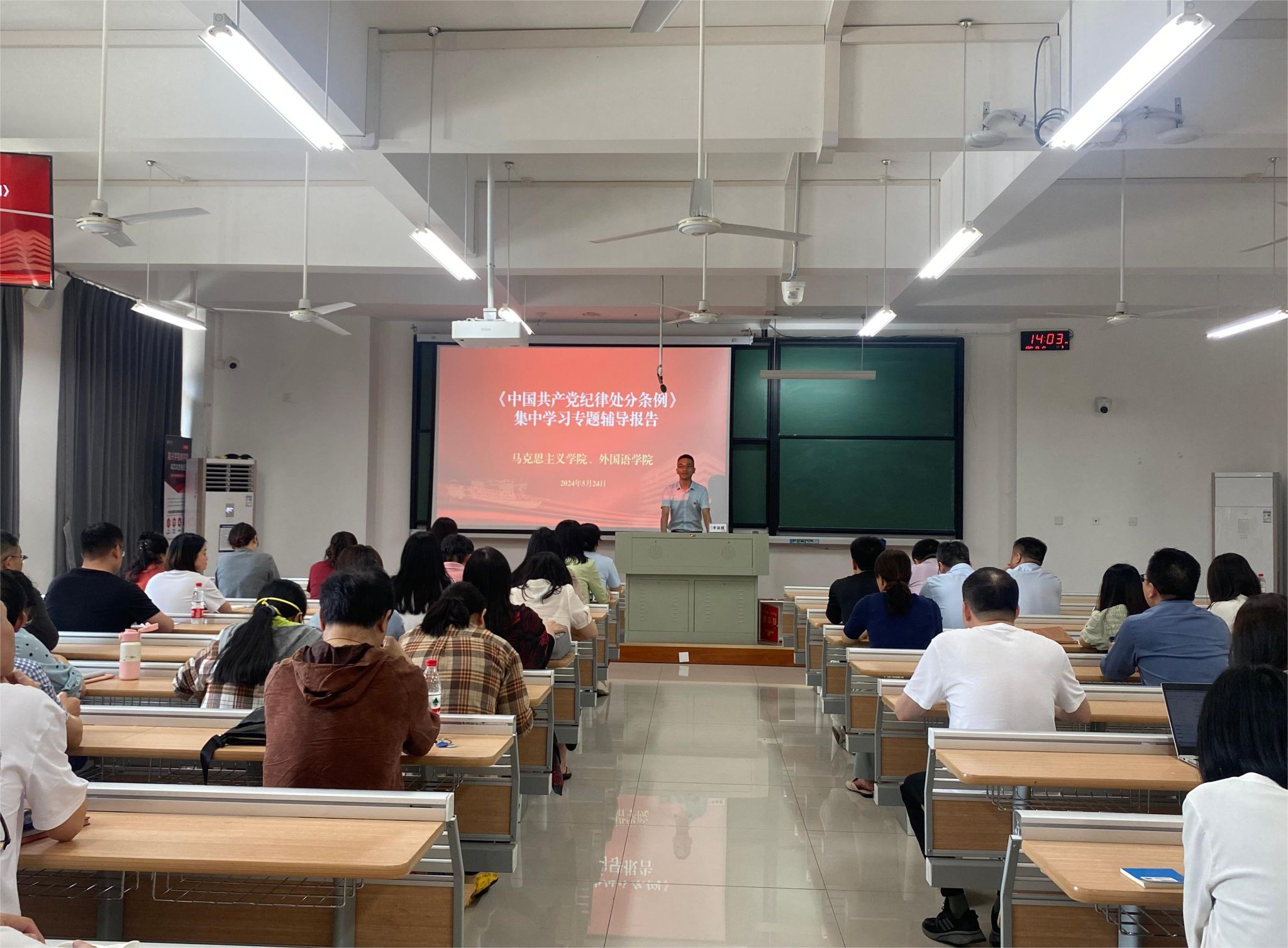2024年5月24日下午,伟德国际英国党委联合马克思主义学院党委,特邀浙江红船干部学院李益模副教授做党纪学习教育专题讲座。讲座由马克思主义学院党总支书记宋之霞主持,两院党员教师参加本次讲座。