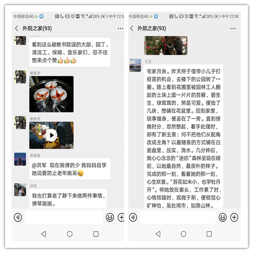 三月七号一大早,学院微信群里热闹非凡,女神们迫不及待提前开始了庆祝的节奏,以图片、视频、抖音、小程序等形式纷纷展示自己的“宅家神器”。先是一波美食、家务、教娃训狗, 接着一波花草园艺、手工创意,然后是一波琴棋书画、吟诗作赋......一个比一个精彩。