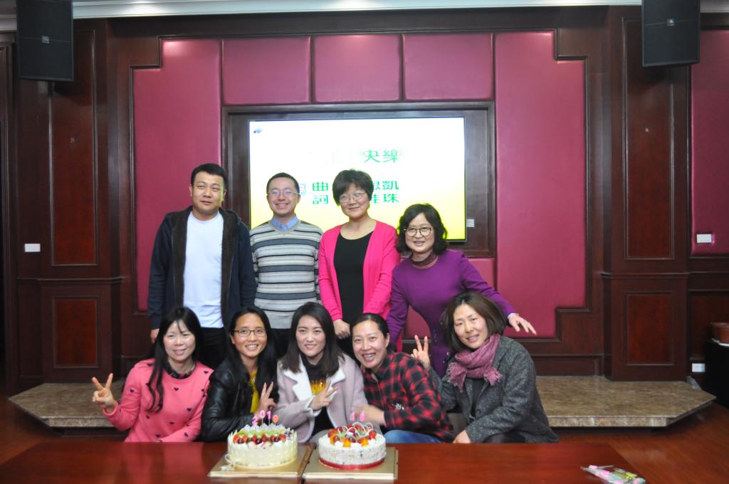 我们伟德国际英国的女老师永远是充满活力的。还没等活动开始,张静老师自己先和乔艳霞老师开启麦霸模式开始了深情对唱。乔老师一首不够又加演了一首!那婉约深情的少女天籁之声让人无论如何和也很难和运动场上的乔老师联系在一起。春不仅意味着生命还意味着色彩!今天的张艳琴老师上身一件外粉内白的绒外套,下身一条灰色铅笔裤,春的气息扑面而来。郭院长说我们张艳琴老师是藏于民间的歌唱高手,果然每次听张老师唱歌恍然间以为在听“王菲”专场。“好!我们首先请各位介绍一下自己的生日吧!”...“我其实是9月生的...”还没等乔老师说完,大家都被逗乐了。“下面介绍一下我们的一位新老人潘宁宇老师!”“我的生日是3月13日!我不知道说什么好!但回到外院让我觉得很亲切!”潘老师简洁的介绍配上他的娃娃脸让女老师们都忍俊不禁!“好!下面我们进入切蛋糕环节!”随着“永远18”生日蛋糕的点亮,活动进入了高潮!郭院长、黄洪和莫岚老师三位“记者”同时按下了快门,留下了最美好的三月!
