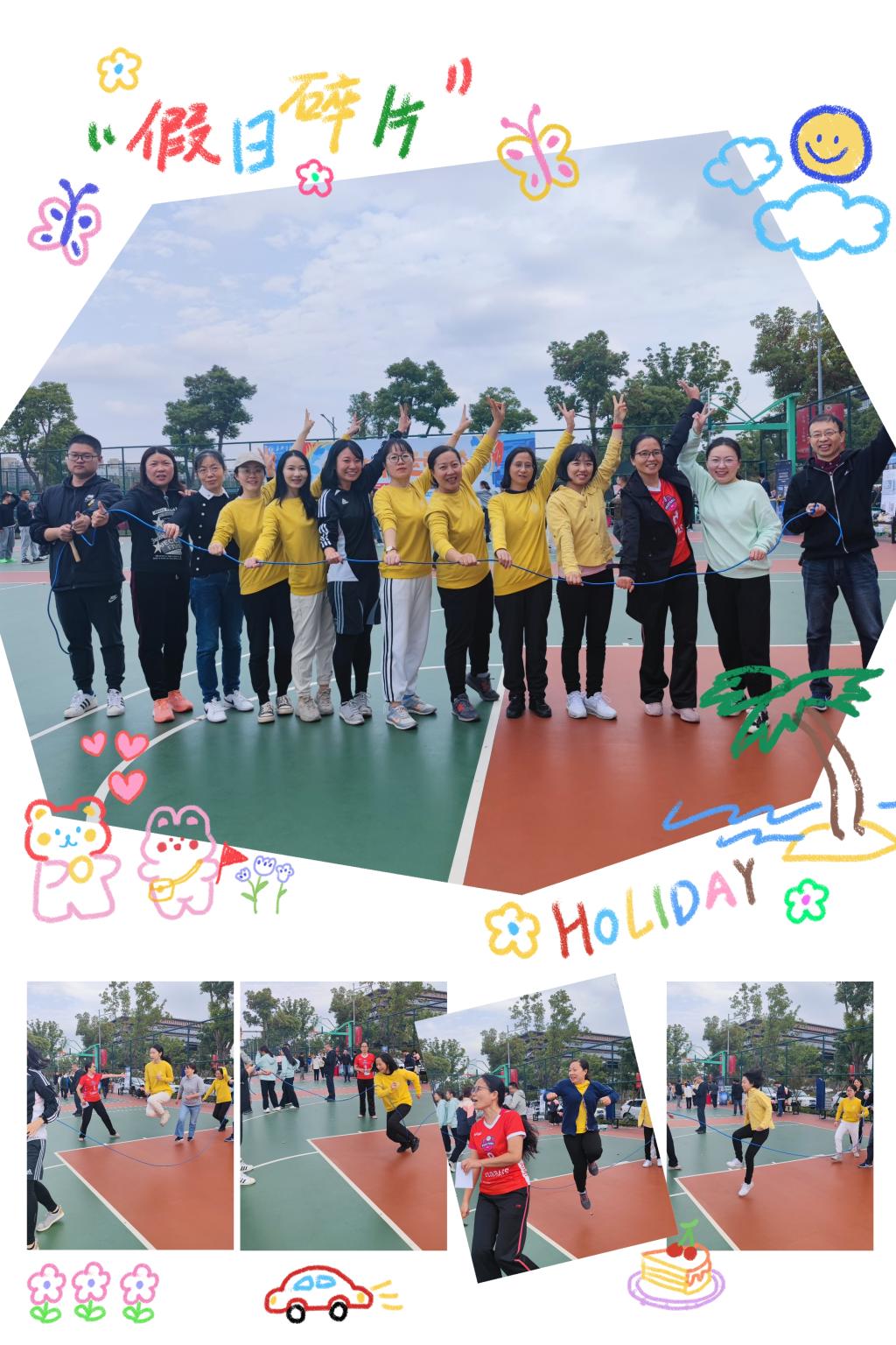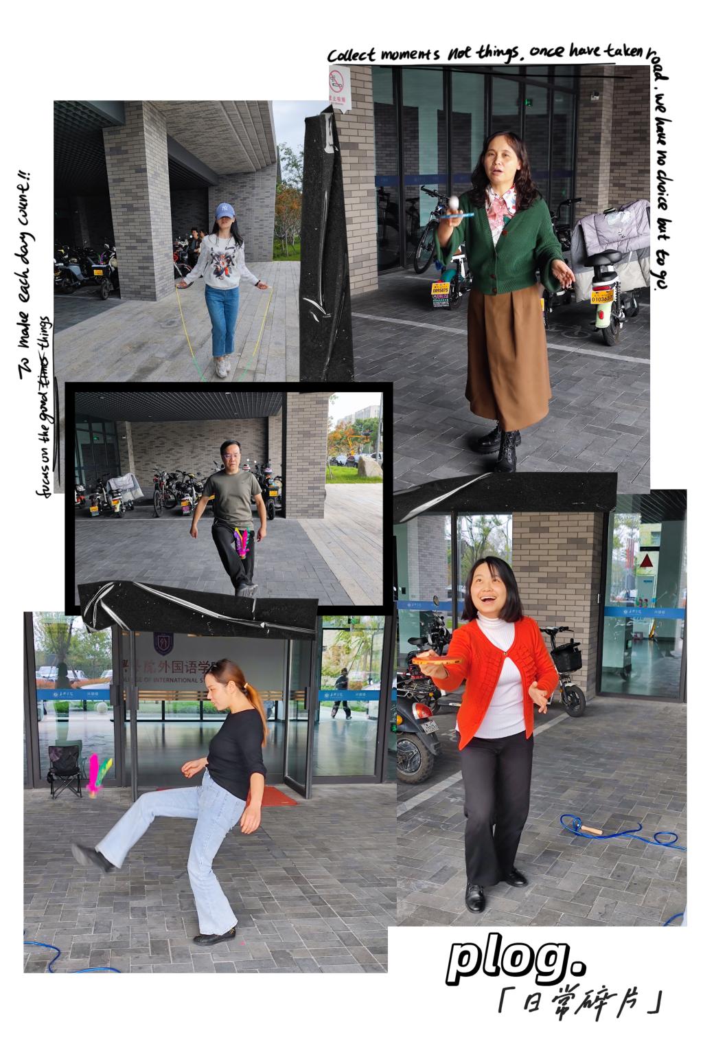 11月4日上午9点校教职工趣味运动会在梁林二期篮球场准时举行。因为除了集体跳长绳这个传统项目外,今年趣味项目都是新项目,老师们既期待又紧张。上午9点第一项是“20米身手敏捷接力”。5位男老师和5位女老师组成的接力队分别要在三个区域完成“跳绳”“踢毽子”和“弯腰旋转三周”。赛场外,伟德国际英国学生啦啦队早已蓄势待发,一声令下篮球场顿时沸腾了起来。下午2点开始传统项目“跳长绳”比赛,由2位男老师负责甩绳,10位外院女将跳长绳。在灿烂的阳光中10位女老师秒变快乐的音符,演奏出了一曲维瓦尔第协奏曲——《和谐的灵感》。