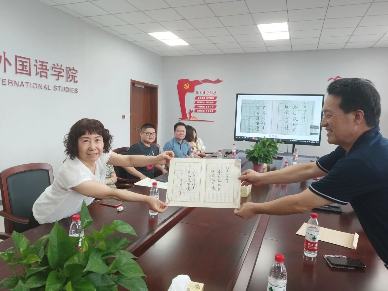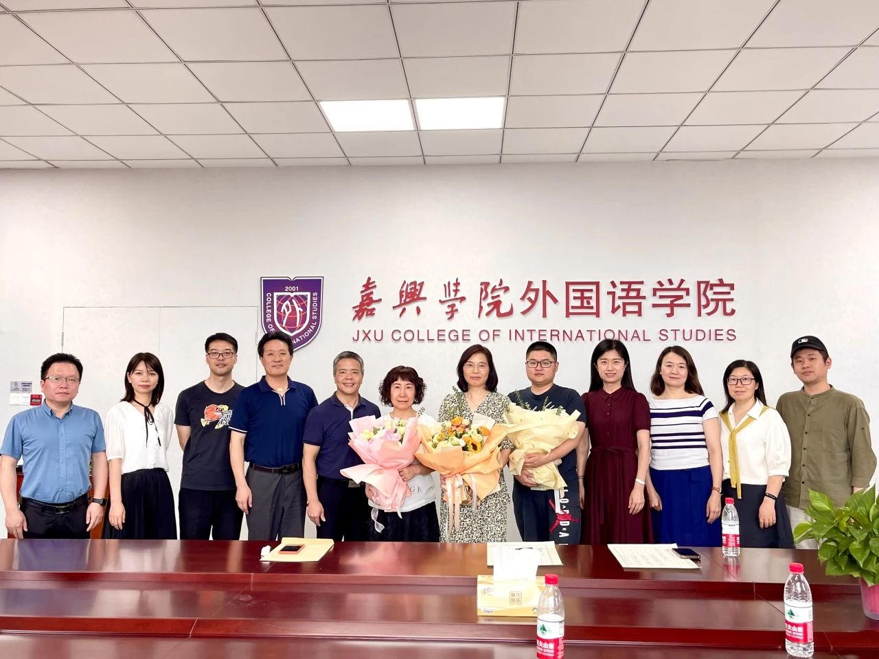 周钰代表学院对三位老师在各自的工作岗位上为学院的建设和发展所做出的贡献致以诚挚的谢意。周红、赵益新、孔少杰老师三位老师对学院领导和同事一直以来的关心和支持表示感谢,深情地回顾了在学校工作的奋斗历程,一致表示,今后将一如既往地关注和支持学院的建设和发展,希望学院的明天更加美好。在座的教师代逐一回忆了与三位老师相处的点点滴滴,为他们爱岗敬业、认真踏实的工作态度而感动,并给他们送上了美好的祝福。随后,学院领导代表学院向三位老师献上鲜花。唐艳芳院长和郭永恩副院长即兴作诗,为他们送上最诚挚的祝福。