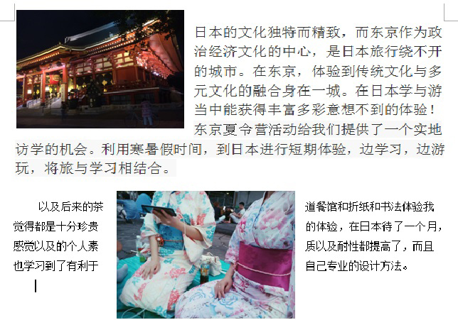 校方安排的项目充实而有趣。在学习日语的课程中穿插了一些日本折纸、书道等课程,而且还邀请日本许多民间友好人士来校与大家面对面交流。校外文化体验课程中,学校安排同学们参观日本名门大学早稻田大学和东京经济大学,与大学教授当面交流,为有意在日深造的同学创造机会。此外,还安排同学们参观了日本百年企业“花王”和日本中央电视台NHK,让同学们近距离接触日本大企业和新闻媒体机构,了解日本公司的经营理念和企业文化。