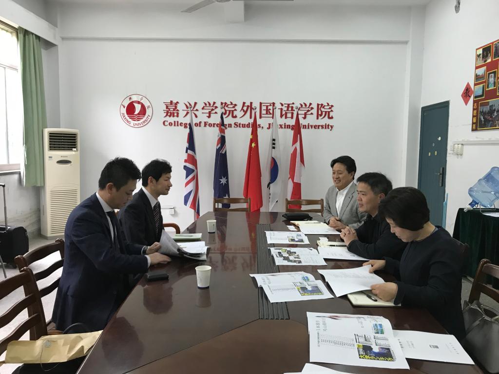 4月12日上午,日本冈山商科大学经营学部教授兼招生办主任大东正虎先生和业绩中心韩壮先生一行二人在国际交流处副处长李月顺和延梅花老师的陪同下前来我院,就今年度两校交流与我院唐艳芳院长、郭永恩副院长和日语系张艳琴副主任进行了座谈。