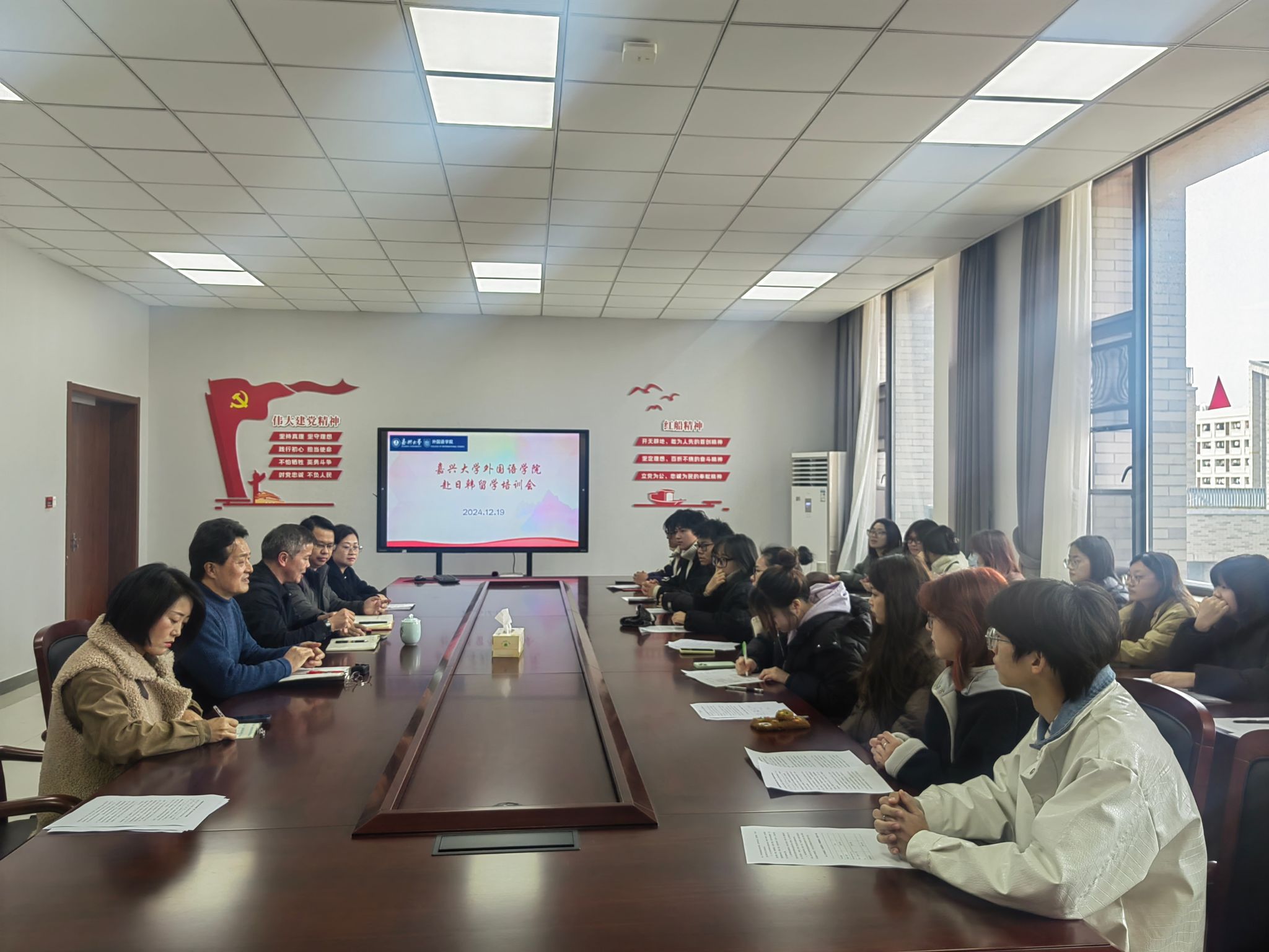 12月19日中午,伟德国际英国在兴德楼516会议室为2025年春季即将赴日韩留学的20名日语专业学生实施了行前教育,行前教育围绕爱国情怀、文化交际、自身安全、学业提升和外事纪律等方面展开。院长唐艳芳、党委副书记张啸峰、日语专业负责人郭永恩、日语系副主任张艳琴以及国际交流合作处赴日韩留学项目负责人延梅花分别从不同方面做了行前教育辅导,会议由日语系主任助理董旭阳主持。
