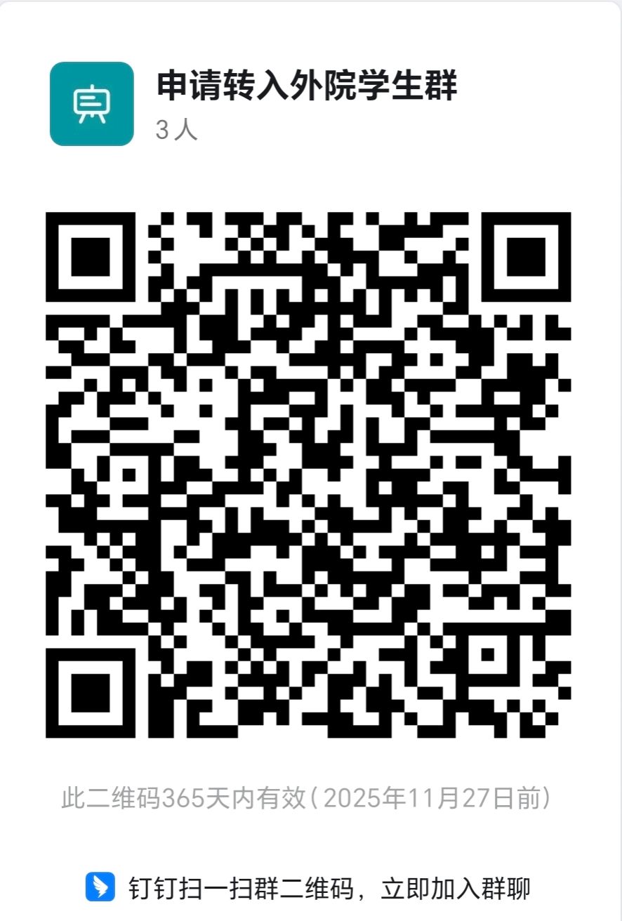2 所有申请转入学生应于11月29日12点前完成钉钉扫码进群。