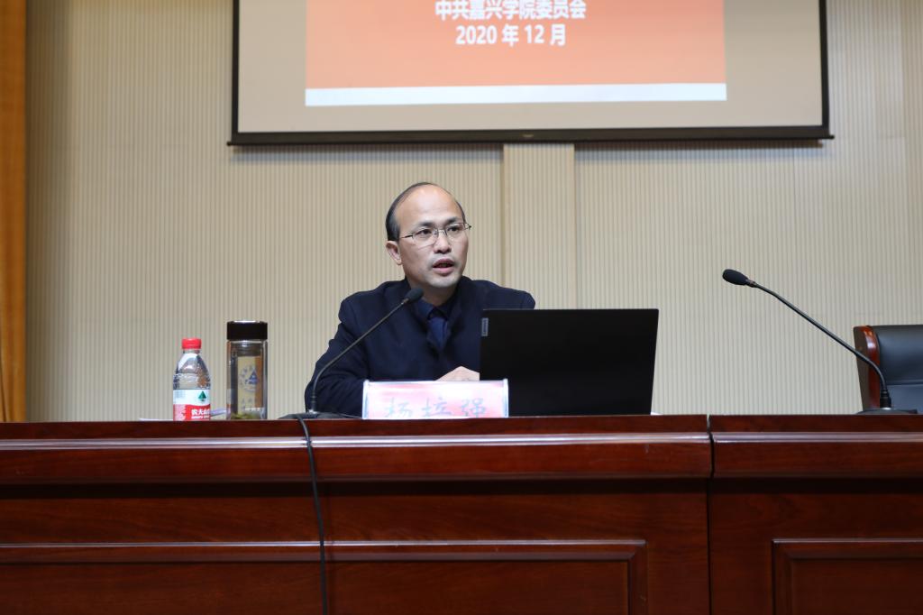 杨培强副校长围绕从历史和全局的高度深刻认识党的十九届五中全会的重大意义、深刻领会党的十九届五中全会的丰富内涵和精髓要义、深入学习贯彻中央和省委决策部署,谋划实施好学校未来发展蓝图等三个方面,深刻阐述党的十九届五中全会精神。他结合习近平总书记考察浙江重要讲话精神、省委和市委全会精神以及学校第四次党代会精神,深入宣讲我校忠实践行“八八战略”、奋力打造“重要窗口”中最精彩高等教育板块的生动实践。
