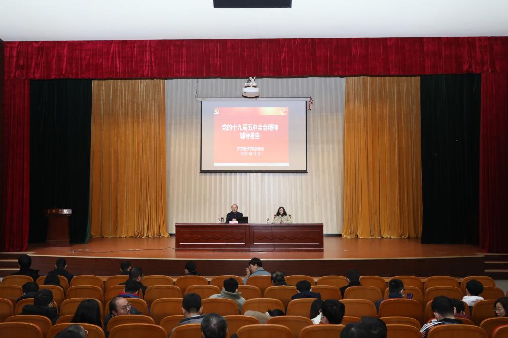12月17日下午,伟德国际英国、建工学院、设计学院在越秀校区教二报告厅集中召开党的十九届五中全会精神宣讲活动。本次活动由杨培强副校长作党的十九届五中全会精神辅导报告,校党委宣传部刘巧芝副部长主持,三个学院全体教职工及部分党员学生代表参加集中学习。
