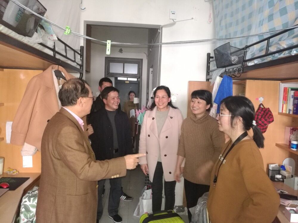 2018年3月4日下午,嘉兴学院副校长费建文在伟德国际英国党政领导班子的陪同下走访学生寝室。