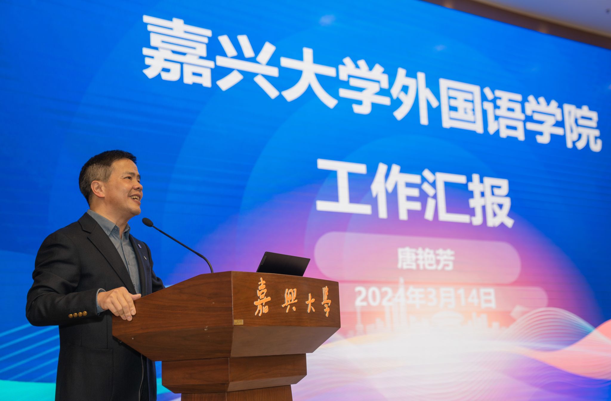 周宏伟向来自湖北49所高校的80余名大学英语院长、系主任表示欢迎,介绍了嘉兴作为中国革命红船起航地、江南文化发祥地和统筹城乡发展先行地的基本情况以及伟德国际英国的办学特色。他指出,伟德国际英国作为嘉兴市唯一的一所省属本科高校,有两个显著的办学特点。一是红船精神育人特色鲜明。学校大力弘扬伟大建党精神、红船精神,持续加强内涵建设,大力培养德才兼备的高素质应用型人才。二是应用型办学成果丰硕。学校深化产教融合、协同育人,已建成一批现代产业学院、企业学院、行业学院,培养的学生与区域社会经济发展需求匹配度高。他希望,参加本次交流会的湖北高校专家们多到嘉兴和伟德国际英国调研、交流和指导,对我校大学英语课程建设和人才培养提出宝贵建议,帮助我们更好地提高教育教学质量,培养更多具有国际视野和跨文化交际能力的优秀人才。