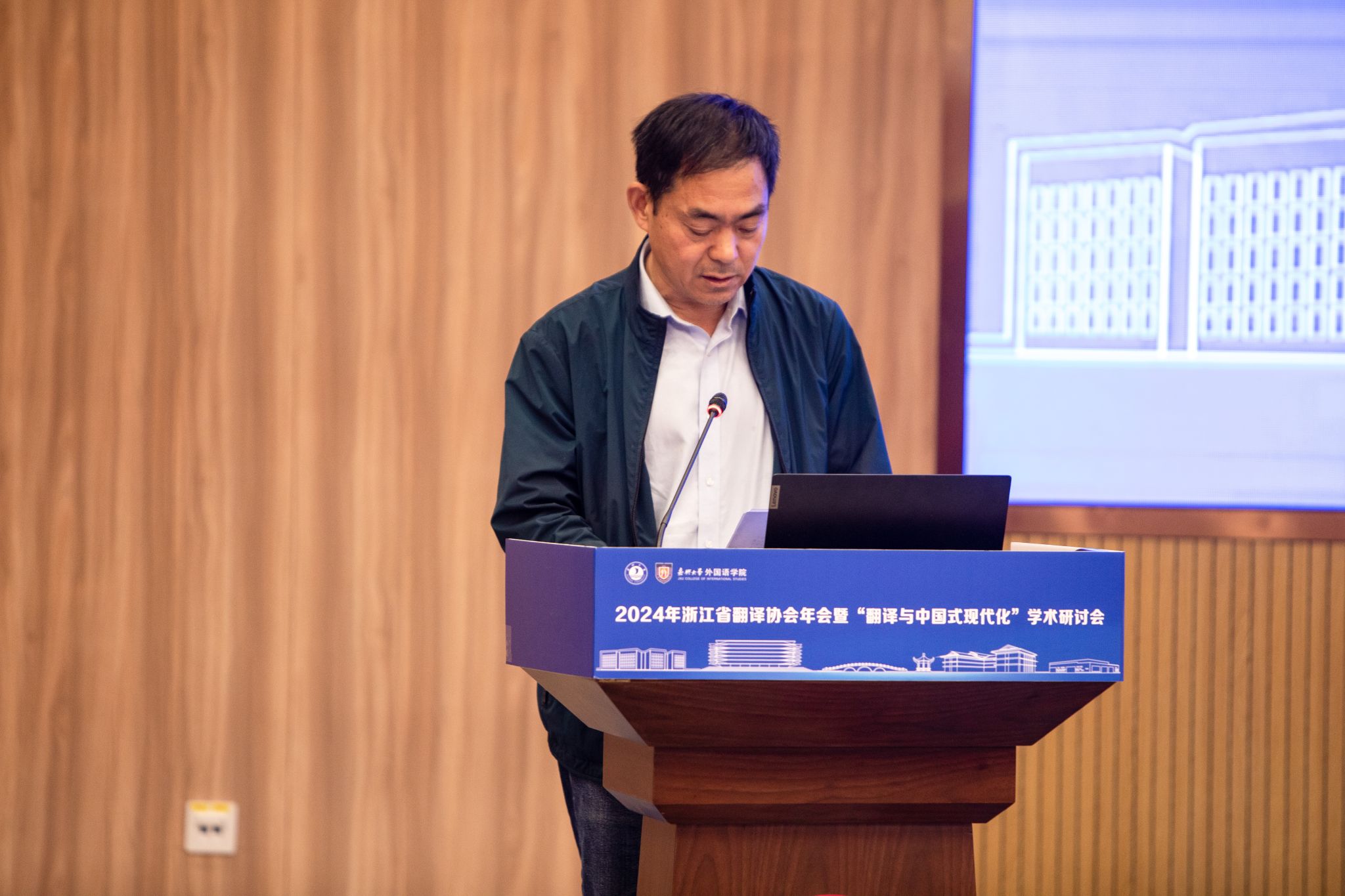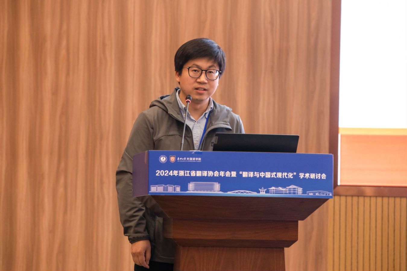 大会还邀请了浙江省翻译协会优秀学术成果奖获奖代表作主旨发言。浙大城市学院卢卫中教授、浙江大学杜磊副研究员、浙江师范大学骆传伟教授、浙江大学周闽研究员、浙江传媒学院蒋剑峰老师分别发言,分享了他们在翻译领域的研究成果。