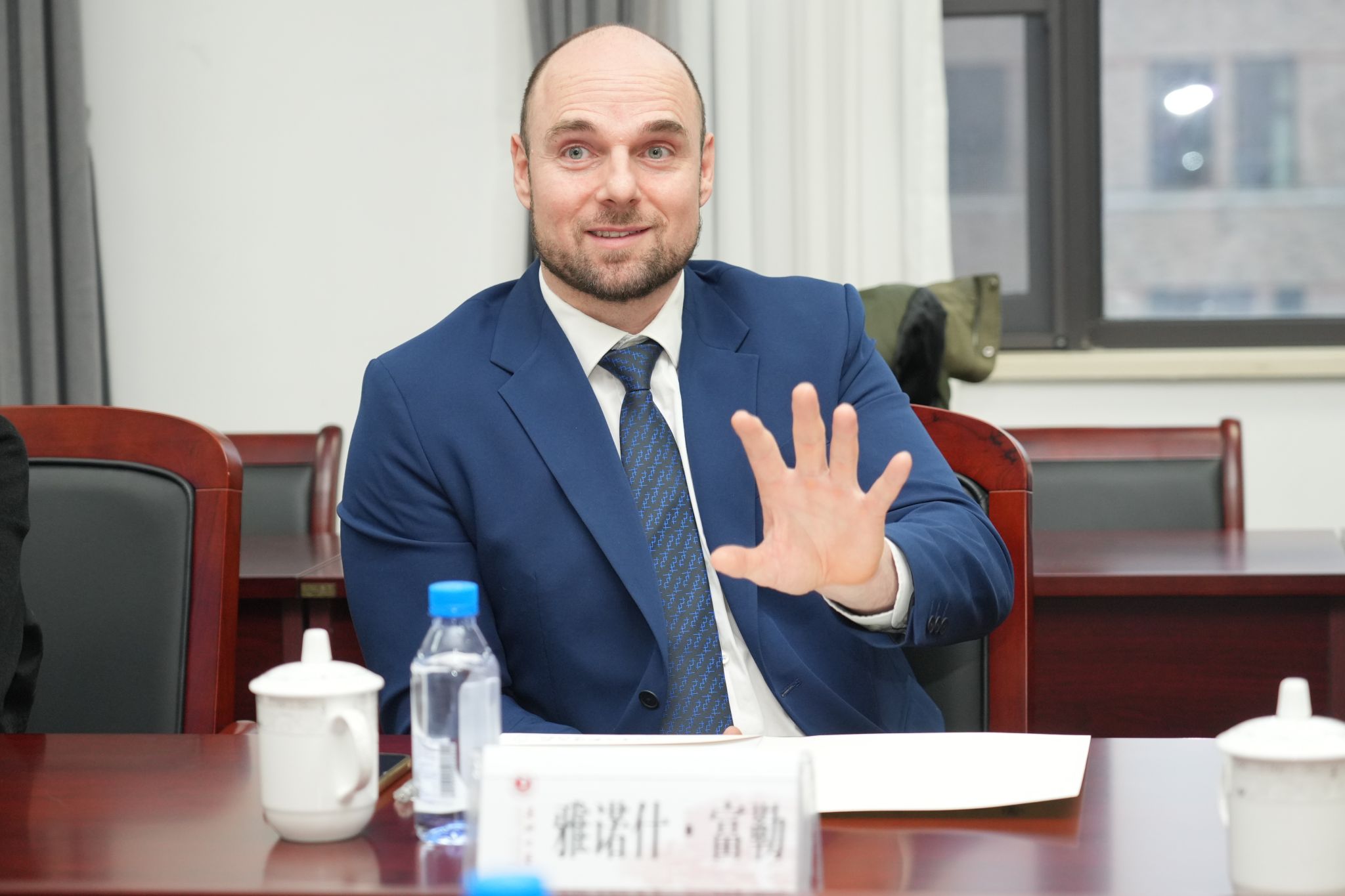 唐艳芳首先对博岚先生的到访表示热烈的欢迎,并简要介绍了与会双方人员。随后,潘巍巍详细介绍了中东欧文化经济研究中心的成立背景和相关情况。博岚先生则结合自身丰富的外交经验,提出了对中心建设的独特见解。双方还就中东欧地区的文化、经济、教育等领域的合作进行了深入的探讨和交流。