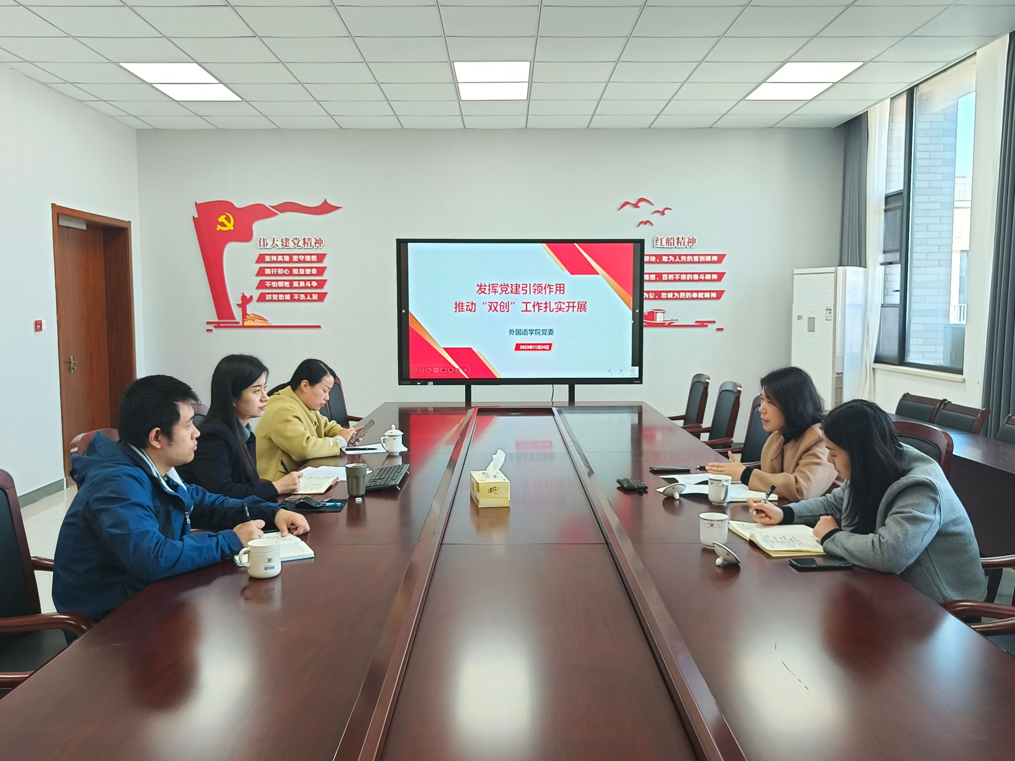 11月24日,校党委组织部、统战部部长陈立力,党委组织部、统战部副部长任玉萍一行到伟德国际英国调研指导党建“双创”工作开展情况。伟德国际英国党委书记周钰、伟德国际英国第二党支部书记侯飞及日语学生党支部书记胡涛参加调研会。